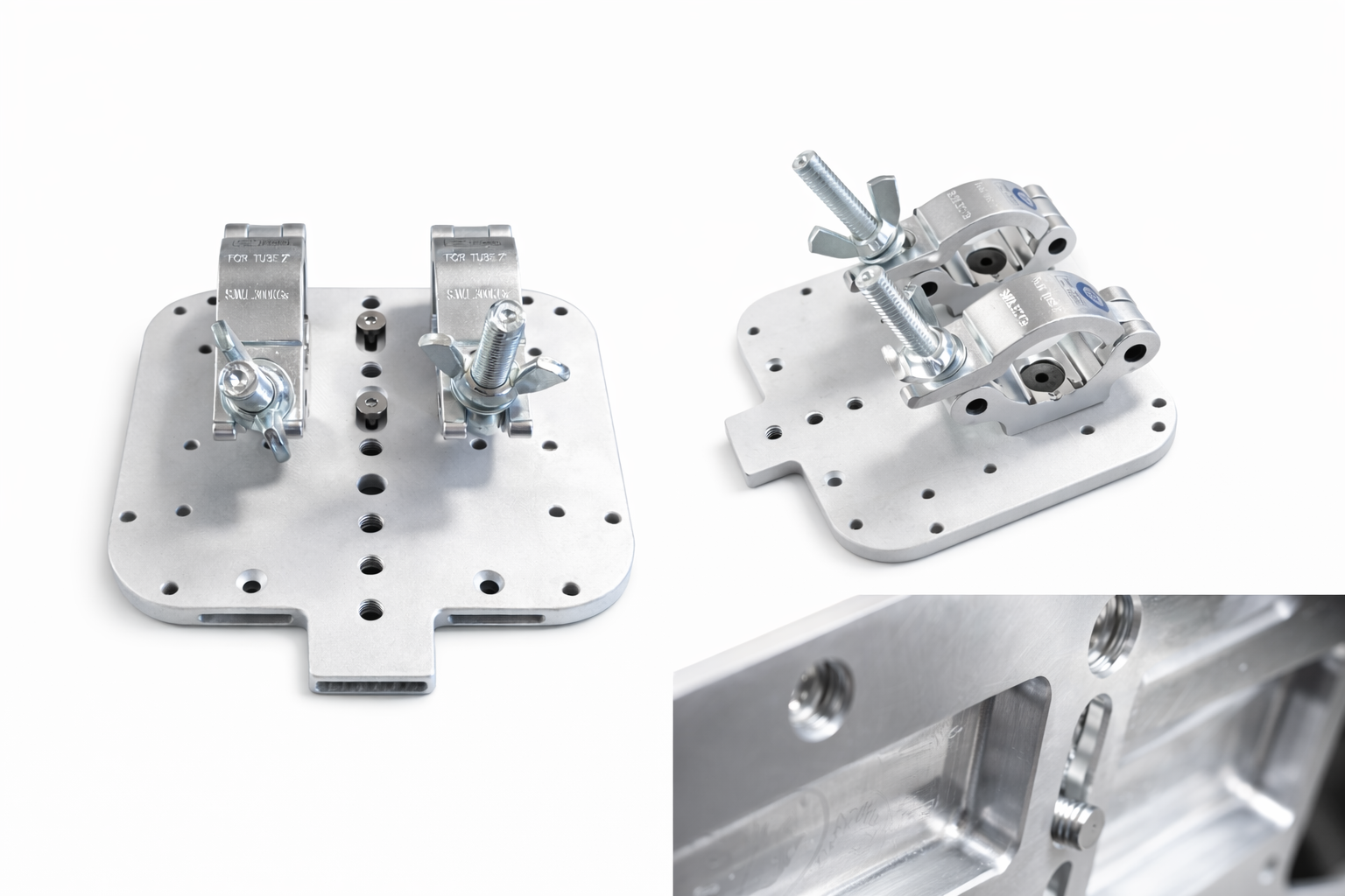Elle dispose de taraudages 1/4" et 3/8" pour la fixation des supports, ainsi que de vis imperdables 1/4" et M3 pour la fixation sur les caméras PTZ.